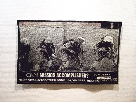 Rytis Naglis Baltušnikas greitai įtikins žiūrovus, kad darbai, kuriuos jis ne vienerius metus kūrė iš emalės, yra nemarūs. Regis, šimtus kartų matytas kūrinys naujai atgimė siuvinio pavidalu, ir, įrėmintas auksuotais rėmais, įgavo naujų verčių ir reikšmių („Give me/Take it“).