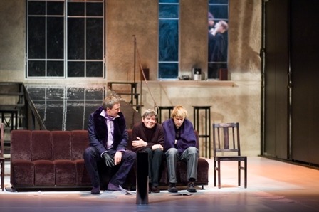Nervinga, po racionalumo ir atsakingumo kauke savo bejėgystę bandanti slėpti vyresnioji Liudviko sesuo (D. Stubraitė) ir viskam abejinga, per anksti gyventi pavargusi jaunėlė (G. Piktytė) vargu ar panašios į gyvas būtybes. Po sceną jos juda labai schematizuotai, tarsi automatiškai. Tokią statiką dar labiau pabrėžia primityvokas apšvietimas (paeiliui apšviečiama tai viena, tai kita scenos pusė).