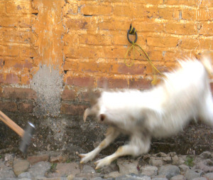 2006-ieji, Vilnius. Lietuvių menininkas Evaldas Jansas dalyvavo tarptautiniame performansų festivalyje „Dimensija 1“ Šiuolaikinio meno centre, kur ketino žiūrovų akivaizdoje nupjauti gyvam ėriukui galvą. Akciją, pavadintą „Pasaulinės demokratijos prevencija“, dar jai neprasidėjus sustabdė Lietuvos gyvūnų globos draugija, policija ir Valstybinė maisto ir veterinarijos tarnyba. E.Jansas prieštaravo, jog ėriuko skerdynės šiuo atveju yra meninis vyksmas, tvirtino vis tiek jį papjausiąs ir skatino žmones susimąstyti, kaip ant jų stalo kasdien atsiranda kepsniai.