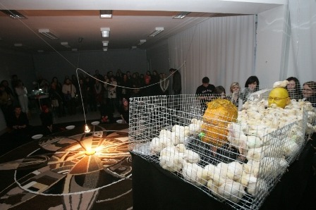 Esminė šios akcijos mintis – gyvybės triumfas - kažkodėl neprasmingai buvo nutrauktas veiksmo atomazgoje, netyčia tapusioje emocine performanso kulminacija. Medžiaginis pagrindas (vyksmo epicentras su viščiukų suardyta mandala) buvo pakeltas nuo žemės ir paverstas savotišku šiukšlių maišu, kuriame kepurnėjosi trupiniais ir lėkštelėmis užversti performanso „gyvybės nešėjai“. Performansas, savo logika buvęs netgi kažkuo magiškas, pakylėtas, baigėsi negrabiu, perdėtai prozišku veiksmu. Į rituališką sacrum erdvę gremėzdiškai įmaknojo trivialus profanum.