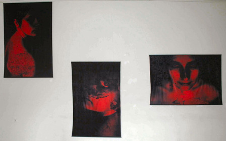 Nejaukumo ar netgi košmaro nuojautą sustiprina aštrūs juodos ir raudonos spalvų deriniai, išsiliejančių tamsių dėmių mirgantys fragmentai, vidinės dramos virpesiais prisodrintos, tiesiai į mus žvelgiančios akys.
