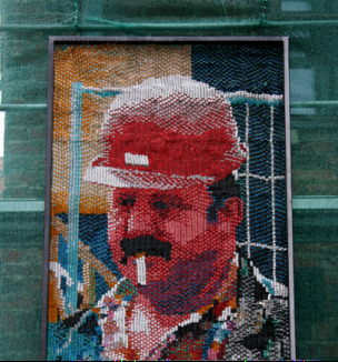Rūta Naujalytė įvairiaspalviais karoliukais išsiuvinėjo statybininko portretą „Rapolas – darbų vykdytojas“ (vadovė Danutė Valentaitė). Pirmas įspūdis -- tarsi girdėtume sugrįžusio socrealizmo aidą – kruopštus akademinis piešinys, tapybiškai modeliuota forma ir pats kūrinio herojus.