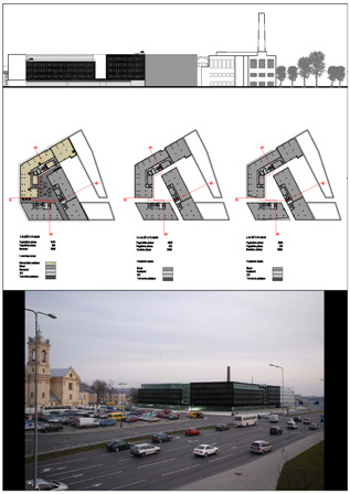 d. Biurų kvartalo architektūrinis sprendimas (ypač kompozicinis ir erdvinis) silpnas, nėra darnos su prekybos centru.