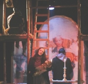 Keista yra tai, jog šiam kontekstui patvirtinti režisierius pasirenka laike nutolusius gana tiesmukus krikščionybės įvaizdžius (dailininkas Danielius Sodeika): scenos centre išstatytą bizantinių formų altorių, jame po truputį ryškėjantį Dievo motinos su kūdikiu atvaizdą, pranciškonų apdarus primenančiais drabužiais vilkinčius angelus-menininkus (prie šių įvaizdžių prisideda ir šiurkštūs medinių rastų pastoliai, kurių masė užgožia mažutę parketinės salės erdvę).