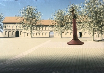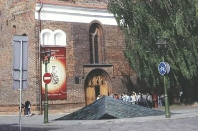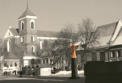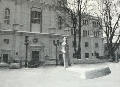 Priešais Jėzuitų bažnyčią vietoje esamo fontano siūlomas dviejų plokštumų – vertikalios ir horizontalios – paminklas. Ant granitinio stulpo užkeltas portretinis biustas iš bronzos veidu atgręžtas į aikštę. Priekyje, tarsi gulintis jo šešėlis – kitas granitinis blokas, primenantis kryžių. Junginys nedarnus, stiliaus požiūriu eklektiškas. Biusto su ranka ir granitinių dalių proporcijų santykiai visiškai nesubalansuoti. Minties raiška deklaratyvi, perdėtai patetiška. Vietos pasirinkimas nemotyvuotas.