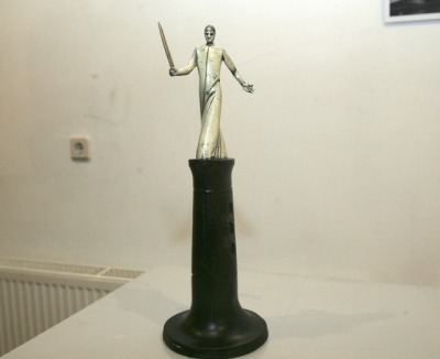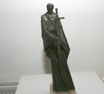Valančiaus gatvės skverelyje siūloma 3,5 m bronzinė figūra ant žemo pagrindo – atvira lankytojų kontaktui su kūriniu. Tačiau skulptūros plastika šiai demokratiškai vietai netinka. Figūra neproporcingai išilginta, jos išraiška (herojus su kryžiumi ir kalaviju rankose) literatūriška, deklaratyvi. Meniniu požiūriu sprendimas visai silpnas.