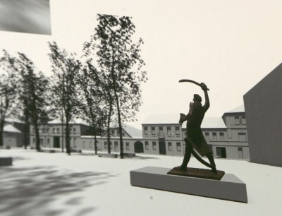 Siūlomas paminklas Valančiaus gatvės skverelyje; skirtingai nuo darbo Nr.2, numatomas visos teritorijos sutvarkymo ir naudojimo scenarijus. Ant neaukštos granito plokštumos stovinti bronzinė kario figūra su ištrauktu ir pakeltu lenktu kardu asocijuojasi su dramatiškais Lietuvos istorijos epizodais. Tiems, kas dar nepamiršo sovietmečio, kils ir kita asociacija – panašumas su vienu iš „4 komunarų“, stovėjusių Vytauto prospekte prie panaikintų kapinių. Bet kuriuo atveju paminklo kuriama nuotaika niekaip nederės prie planuojamų lauko kavinių, turgelio, suoliukų ir vaikų žaidimo aikštelių.