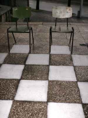 Stilizuotame kino teatre buvo rodomas filmas apie J.Mačiūną, jo performansus. Nenusėdintys vietoje keliavo į galerijos kiemą, kur galėjo pasijusti tikromis šaškių ir šachmatų figūromis didžiulėje žaidimų lentoje ir išgyventi pralaimėjimo arba laimėjo akimirkas.