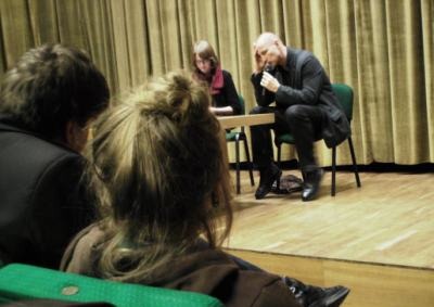 Vakaro svečią pristačius kaip poetą, eseistą, kritiką, dramaturgą ir vertėją, šis tik ramiai šypsojosi ir teigė, kad tiek „titulų“ pats tikrai neprisimintų, o save vadina tiesiog rašančiu žmogumi. Apipiltas klausimais S.Parulskis daug raukėsi ir bandė išsisukti, tačiau įspraustas į kampą kiekvienam rado atsakymą, jį pagardindamas lašeliu humoro ir didžiule doze ironijos.