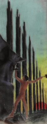 M. K. Čiurlionis. Vitražų diptiko “Rex” eskizai. I-II. 1904. Pastelė ant popieriaus, 74,5x29cm, 74,3x29,2 cm. Nacionalinis M. K. Čiurlionio dailės muziejus, Kaunas.