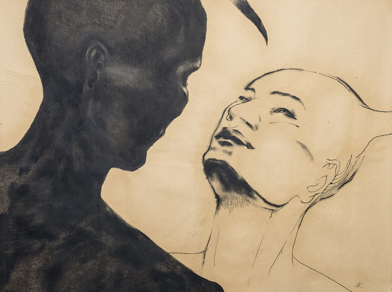 Jau buvau minėjęs, kad A. Kleizaitės darbai kelia veidrodžio atspindžio apmąstymus. Štai viename iš kūrinių regiu dvi, viena į kitą atsuktas galvas, surėmusias iš burnų iškištus liežuvius. Dar kitame – suglaustas galvas ir užmerktas akis. Paveikslai simetriški, vaizduojamųjų asmenų veidai jaunatviški. Vienas personažas yra vyriškos, o kitas – moteriškos lyties. Taip pat yra kūrinių, kuriuose negalima griežtai identifikuoti vaizduojamųjų personažų lyties. Šiuo atveju tokie autorės sprendimai mane provokuoja prisiminti ir cituoti Mauriceʼą Merleau-Ponty (1908–1961): „[…] Žmogus žmogui yra veidrodis[5]. Aš galiu matyti savo akis veidrodyje, bet jos yra Kito stebinčio […][6]“. M. Ponty savo tekstu, o A. Kleizaitė paveikslais rodo, kad veidrodiškumas siaurina atstumą tarp kūno atvaizde ir kūno tikrovėje. Pavaizduotas kūnas yra menamas ir tariamai gyvenantis.