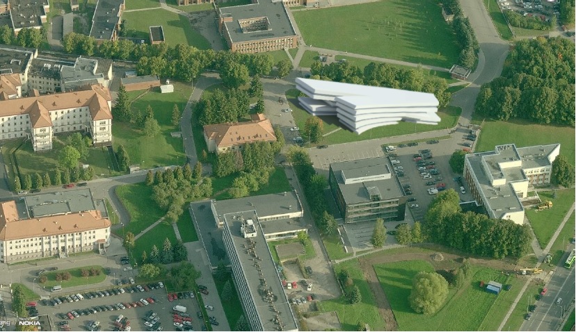 Matau tokias problemas: naudojama sena klinikų fotonuotrauka ir nėra urbanistinio maketo. Keista, kad universitetas nepateikia visos medžiagos – būtinas universitetinio miestelio detalusis planas. Taip pat neparodytas mūsų projekte numatytas dviejų aukštų garažas. Be parkavimo sprendinių jūsų projektas negalės būti įgyvendintas. Neaišku, nei kur yra automobilių vietos prie pastato, nei ūkinė įvaža, nei pagrindinis patekimas.