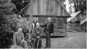 Dailininkai A. Vaitkūnas, A. Vilpišauskas su žmona, E. Markūnas ir A. Obcarskas Šilavoto Davatkyne 2004 metais. Aldonos Ruseckaitės nuotrauka