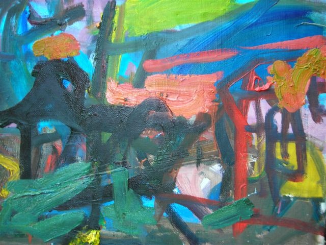 This autumn of 2004 painting became a continuation of himself to Arūnas. Only the movement of hand is important. The strokes are very organic as if prolonging his body. The painting is only implicit sometimes. The surface of a painting is like skin – scratched by the other end of a brush, beaten at places, while slow and soft strokes are felt in other spots as if they were touching a lover’s body.