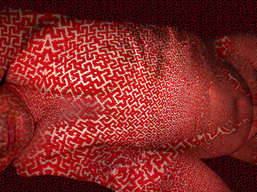 Another field of interest of L. Oržekauskienė is the visual features of an ornament and its symbolism. The artist follows the Indo-European ornamentation, patters of Baltic webbings. The ornament of uncinate cross prevails. Lately metamorphoses of crux gammata ornament are becoming a basis according to which magic dimensional views of a body are modelled by computer technologies.