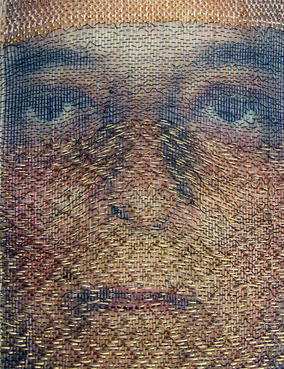The artist realises the classics of weaving as an objective thing and tries to turn into part of contemporary art by analysing classic weaving techniques coherently. The idea of an artwork is closely related with specific possibilities of technique and fibres for L.Oržekauskienė. Skeins of different thickness and shade model form optically and create the variety of colours. It is a complicated technique demanding great accuracy created by the author herself. Every skein (of gold, hair or cotton) is not only decorative but also renders a code of information. The impact is really strong – it seems as if one is standing at a live body or icon.