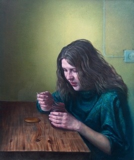 In fact, several works ignore the conditions of commercial art in general and are close to the concept of elite painting. The works of Paulius Juška, who fulfils the requirements of hyper-realism well, are attractive. The paintings “Dessert” and “Two Sides” deny the aesthetics of “beauty”, and the “Look Beyond” cast across the shabby windowsill represents the illusion of space.
