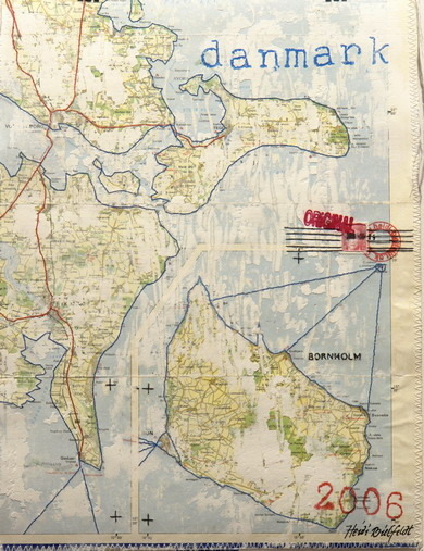 There are many fragments of written language in the exposition – notes, signs, paper clips. Artists leave the text illegible or arrange the meanings and mood of their artworks using the text. Katharina Pieper uses calligraphic decorative phrases in her lyrical works which render lightness and existential thoughts. Lis Rejndet Jensen (Denmark) arranges fragments of printed text which frame a futuristic screaming face of a woman. Inger Agnete Diemer (Denmark) imitates golden sheets illuminated with eastern inscriptions. In this way she reminds of the Middle age chroniclers who also worked in collage technique by writing down separate paragraphs from different resources and joining them into one unity.