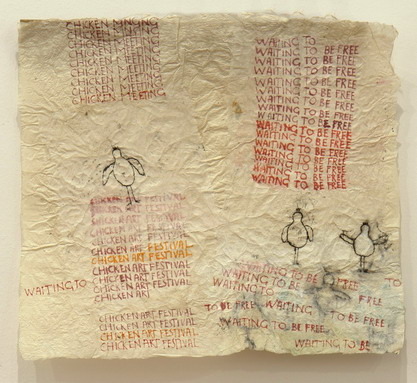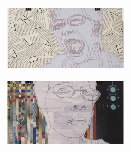 Meanwhile, other authors declare an infantile relation with collage loading the conscience of a spectator with teddy-bears, children’s drawings and bright colours. The dose of childish primitivism my be justified only in the diptych of Josephine Tabbert (Germany), which was recognised the best artwork of the exhibition worthily. By drawing playful hens and funny notes on the soft and crumpled paper, the artist entwines a thread of absurdity inviting to a “chicken’s art festival”.