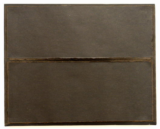 Ramūnas Čeponis also surprises by the fresher look to collage. Minimal cardboards of neutral colours open up with silent mouths, which calmly create a dissonance to the collage uproar of the exhibition. The diptych of purified expression proves that the persuasiveness of collage may be constructed not only by whirlpools of screaming shreds but also by restrained means.