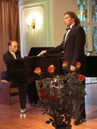 The songs were performed by young Russian performers who have already gathered some titles – the winner of international contests, soloist of Moscow Philharmonic V.Avtomonov (powerful and emotional baritone) and the winner of international contests, doctor student of Moscow State P.Chaikovski Conservatory D.Zykova (subtle and professional soprano). Her voice contrasted with the baritone by the strength - after emotional shows of V.Avtomonov, romances interpreted in a subtle manner by the soloist made everyone listen up. The singers were accompanied by the pianist Aleksej Lukovnikov, a lecturer of Moscow State P.Chaikovski Conservatory. He played in a subtle manner and sounded expressively in the solo episodes.