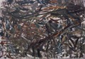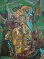I call the works painted by Arūnas in 2000-2003 existential – psychological works. He created some canvases intensively in Margionys during the summer and others – in winter at his workshop in Kaunas. He painted interiors with alters at St. George Church in Kaunas. Sacral interiors of the forlorn church are without a human-being. The being of him is only implicit. Another force reigns in majestic interiors – it leaves a trace through the intensity of a stroke or a stern selection of colours.