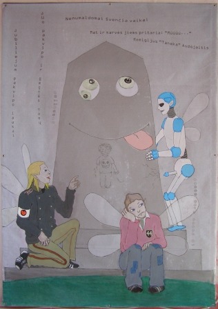 Blue woman: What svamis, get down to earth. Lithuania is suffering from moral and economic crisis! Hush, cat, do not laugh! What will become of the nation fed with such art? No thought, no meaning, who gave permission for demonstrating the pornographic “art” of low morale and of the level of colour books? I'll address responsible institutions and call journalists as this may not be left unnoticed.