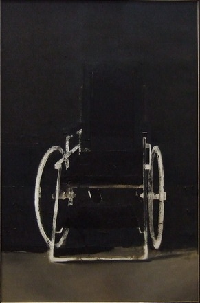 Several pietas of the artist are completely black, look like vacuum, but tousled facture forms a silhouette when one comes closer. The big impression is left by “Pieta” of 1989, and the pieta of A. Šatas in a wheelchair (1986) is the most astonishing. The motif of a disabled, ill pieta shocks much more than the image of suffering Mother of God in Christian paintings.