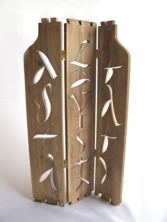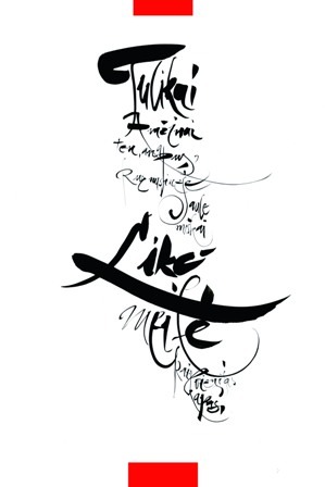 Beauty and elegance, decoration is more important than content in a calligraphic text. In general, painting, drawing and calligraphy is related by many things: importance of concentration, expression of line and colour, masterful work by a brush. There are not many creators of real traditional calligraphy in Lithuania (Algis Kliševičius, A.Gurskas, A.Lisauskienė, Mindaugas Petrulis, Rasa Bočkutė), as artists stopped training their hands and use more modern means.