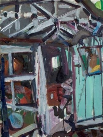 Arūnas found motifs quickly. He entered the dark hen-coop and started painting. The mother of G.Dabrišius used to wonder: “What does this artist see in the dark there?” Arūnas admired the twilight and structures of the stable, hen-coop. He also painted ornamented windows of the kitchenette in daylight when it did not rain.