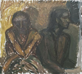 Pain, disease, sense of death are frequent themes in E.Velaniškytė’s works. (“A Ward for Two”, 2007, “A Man and his Pit”, 2009). Still, the attitude of Eglė is not desperate. E.Velaniškytė paints figures in brownish, greenish and black shades as if looking for reconciliation with the hardship.