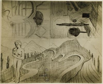 Sketch of composition. 1905/1906. Page of drawings. Paper, pencil, black ink. 17.4x21.7cm