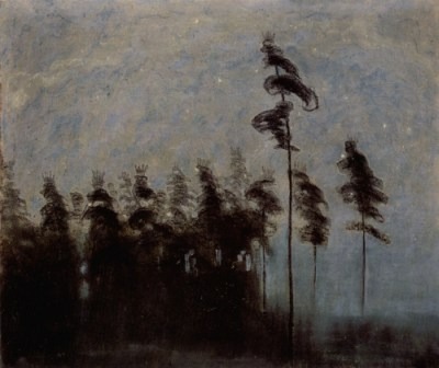 Both sketches and paintings show that, seeking for decorativeness and abstraction, M.K.Čiurlionis continues experimenting with the motif of nature. An even coloured area is combined with pushing contour line in his works.
