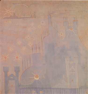 Bells are pictured in the painting “Tower” (1904). Continuous line, waving contour typical of Secession is prominent in this work. Abstraction is much closer to the musical phrase here; therefore, associations with sound become clearer in this work.