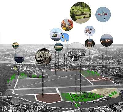 Motocross and a route for all-terrain vehicles would be constructed in the unused part of the airport. The project was called “Therapy of Engines” as it would be therapy for extreme adventure lovers, therapy for the airfield and therapy for the city searching for identity of unused historical space.