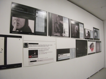 Real communication and real meetings are changed by life in virtual space. These matters are examined in the exhibition ‘Share. Like’ by Jūratė Rekevičiūtė. Held at the Meno Parkas Gallery it was one of the first shows of the Contemporary Art Festival ‘Kaunas in Art: Talking‘. J. Rekevičiūtė works in the field of graphics, installation, porcelain decor and curates contemporary art projects. She has been analysing ‘Facebook’, its potential and illusions for some time now. In her new works the author makes viewers wander in the flow of comments, links, posts and photos and raises the question – ‘Who shares what and whom with?’. The author asks us to determine what is real and what is not. She also provokes us to decide to hit ‘like’ or not. The topic chosen by the author could be examined in many ways – as an alternative to real communication; as perfect casting of masks; as medium for escapism; a ring of attitudes and virtues, and finally as space shaping some certain culture of communication.