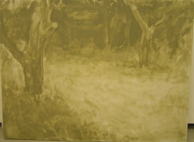 Works created in Vienna may also be divided into two groups – of a larger and smaller format. Most of attention is allocated to the landscape that surrounded M.Gailiūtė in Vienna in larger works. It is pictured as if viewed at a distance in paintings. The depth and distance is revealed by darker shades on canvases, and the dripping paint creates the impression of a mist and mystery.