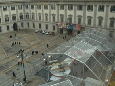 The Cathedral Hall at Pallazo Reale. The pavilion of Museo Del Novecento in front of the entrance to the exhibition of M. K. Čiurlionis. Photo by R. Andriušytė