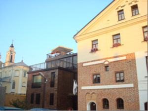 Another change occurred in one of the most forlorn zone of the Old Town – in T. Daugirdo street where the hotel Daugirdas is established. The historical building of the 16th-19th century restored according to the architect Asta Prikockienė’s project exposes the layers of all centuries and is connected with a new building. It may be called the prime connection of old and new architecture in the Old Town. Still, the author of the article notes that harmony between different periods of architecture was not created in all places. Sometimes the integration of the old and the new is too harsh. Even though the new wing complies with the scale of the environment, it seems to be dead. Meanwhile, the internal yard covered by a roof mitigates the strictness of the junction of the new and the old parts of the building. It reflects the dialogue among centuries the best.