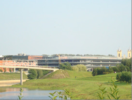 The emergence of the new shopping centre Akropolis in the New Town, Karaliaus Mindaugo Avenue caused many discussions. The giant building covers three quarters and is connected with the over-ground automobile parking lot. It has changed the panorama of Kaunas completely. Still, according to the author, the shopping centre has several advantages: the forlorn territory was tidied up. The well-lit garages give prominence to the night silhouette of the New Town at night. The biggest value is the successful integration of the old factory buildings into the new complex.