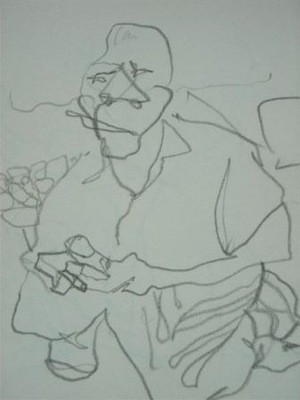 A.Vaitkūnas. Neighbour Tamas. Drawing from a notebook. 2003. Paper, pencil.