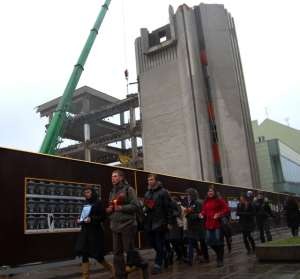 There has appeared a group of enthusiasts who decided to show that they were concerned about the farewell to Merkurijus. It could be explained by sentiments or by the feeling of injustice regarding the works of the architect Algimantas Sprindys (ill success pursues the architect – his works are pulled down one after another). Or perhaps it was a wish to gather and present material about the commercial giant of the Soviet times to people, while the frame of the building is still in place and every passer-by remembers how the former building looked like.