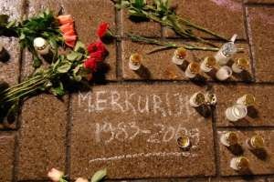 Spectators and mourners gathered to say farewell to Merkurijus at its grave. The participants of the performance, the crowd of mourners marched with sad faces from St. Archangel Michael Church. The portrait of the shopping centre with a black ribbon was carried in front of the walking people. After honouring the grave of Merkurijus with flowers and candles, the mourners said a speech dedicated to the largest Kaunas shopping centre of the Soviet times. It was ironic and bombastic at the same time.