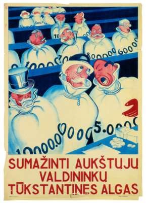 Works created by artists in independent Lithuania were sometimes used for posters and illustrations of newspapers. They confused the viewer and created an impression that nothing changed much. Also, the history of postage stamps reflect the situation of Lithuania, which altered in one year, well.