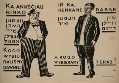 Anonymous author. Electioneering poster (in Lithuanian, Jewish and Polish) “Who was elected earlier and who is elected by us now”. 1940, Lithuanian Academy of Sciences, Vrublevskiai Library.