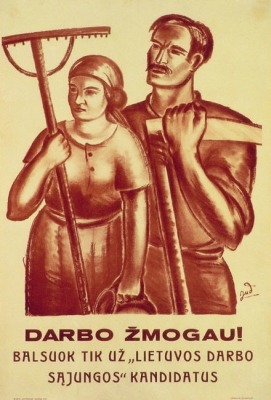 Antanas Gudaitis. Poster “Labouring man! Vote only for candidates of the Lithuanian Labour Union”. 1940, Lithuanian National Museum.