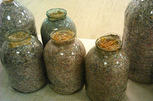 In the exhibition "Litrožis" A. Andriuškevičius invites a viewer to take a walk around a myriad paper shreds cut into tiny pieces. This large bunch of paper shreds is divided in to two groups. One of them is the most domestic - glass jars on the table of the gallery, and close to the jars - a glass tea cup. Glass jars are of different size and intended for different purposes (in one of them you could make a tasty Lithuanian apple wine) but they are all filled with paper shreds. As if disorderly, helter-skelter. There is no meaning in color, no ornaments, and no other sweet or pretty motifs.