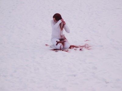 When asked about the video documentary of the performance “February will not Last Forever” presented in one of the artist's solo exhibitions in 101 gallery of VMU in spring of 2008, V. Tamoševičiūtė tells that she decided to picture the cutting of red hair on white snow as transition to a new status, as a change. The artist experienced a divorce at that time and wanted to get over it and move ahead. Red hair left on white snow was like purification.