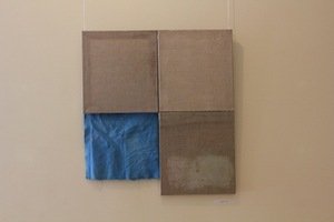 Štai antroje jų ant drobės prasimušdavo labai svarbios žydros dėmės: kai kur visai įprastai, iš abstrakčių dėmių – debesų formų – lengvai prigalvotum raminamų pavidalų ar malonių jausenų. O vienoje vietoje, prireikus labai intensyvaus žydros spalvos priminimo, tapytoja sugalvojo padaryti visai ne taip, kaip įprasta tapyboje. Pvz., ten, kur reikia dominánčių arba visų jėgų sutelkimo į vieną centrą, kuris nors tapytojas imtųsi pastoziškai žaisti arba negailėdamas dažų privarvintų iš tūbelių neblogą sluoksnį, sudarantį reljefiškai blizgančią, bet nepermatomą dėmę. Tačiau čia Jovita ėmėsi kitokių, meistriškų, medžiagos dažymo įgūdžių arba norėjo, kad taip pamanytume – vieną ketvirtąją savo tapybos darbo ji tiesiog suglamžė ir pamerkė į dažus, ne kitaip. Paskui ta dalis buvo prijungta prie kitų įrėmintų taisyklingų trijų ketvirčių, kaip išskirtinė, gležna, bet pati ryškiausia skiautė. Tomis kitokiomis savybėmis ji (skiautė) ir patraukė dėmesį, ne kaip tvarkinga, o kaip nepritampanti, galinti nukristi, kabaruojanti, be stabilaus rėmo. Tokių išskirtinių, klausimus keliančių detalių pilna visa paroda.