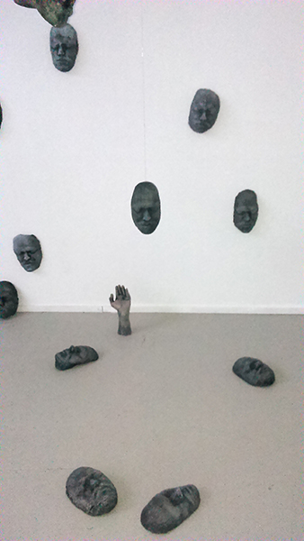 Parodoje eksponuojamos ir iš sienų ar grindų išnyrančios keraminės rankos. Plaštakų pirštai kažko siekia, nori paimti, sugriebti, yra nervingai surangyti. Šalia rankų ant grindų sudėliotos keraminės veidų skulptūros. Žvelgiant iš toliau, veidai ir rankos sukuria besikeliančio žmogaus įspūdį – tarsi jis būtų įkalintas, net įmūrytas į grindis. Išnyra tik ranka ir veidas, todėl pabėgimo, išsilaisvinimo motyvas parodoje tampa akivaizdus. Fizinio ir dvasinio išsilaisvinimo siekiančios figūros perteikia kančią, nenorą likti ten, kur yra.